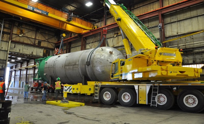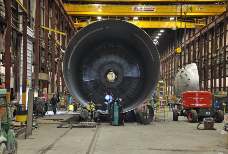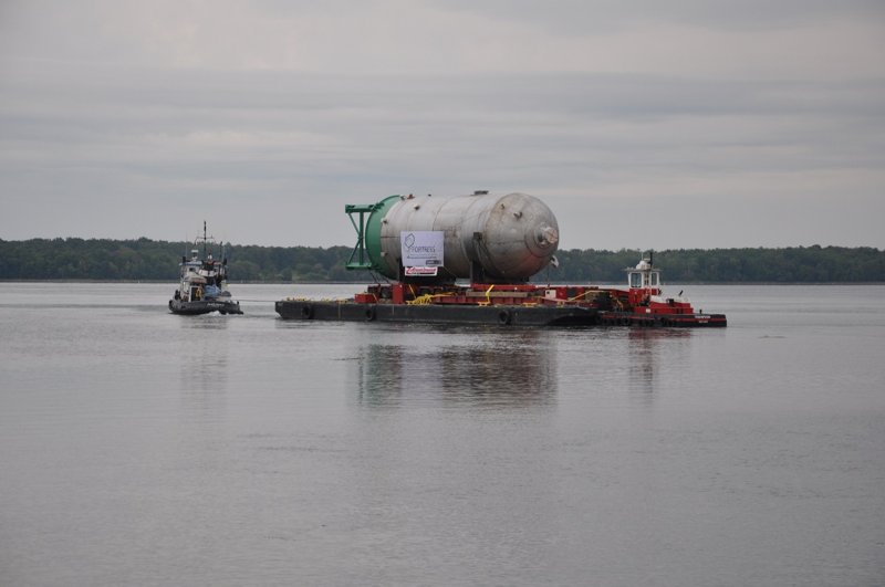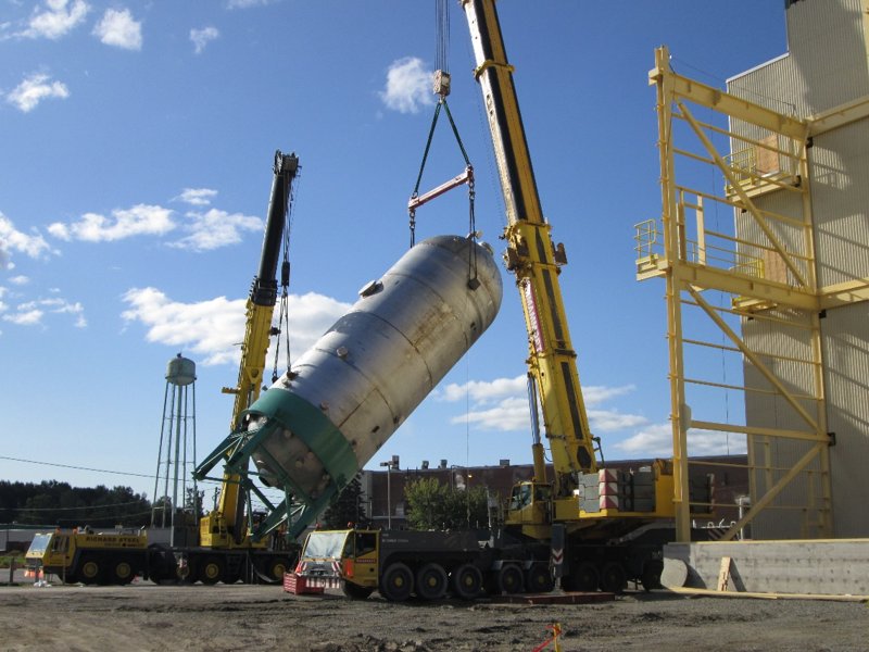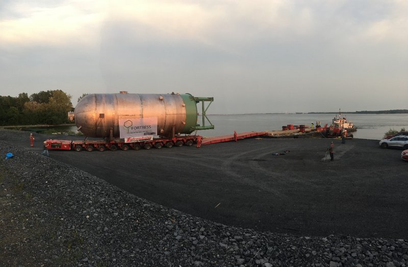 When Fortress needed to add additional capacity at their pulp mill in Thurso, they turned to Laframboise Group based on logistics. With LGL’s fabrication facility based on the shores of the St. Lawrence River and the Thurso mill on the Ottawa River, LGL were able to fabricate totally indoors, transport in one piece, and install an intricate 2205 duplex stainless steel pressure vessel, 19’-6” diameter x 60’ long, weighing 212,000 lbs to their site. This allowed Fortress to schedule their site works and building without the cumbrance of having to deal with a major field erected vessel.